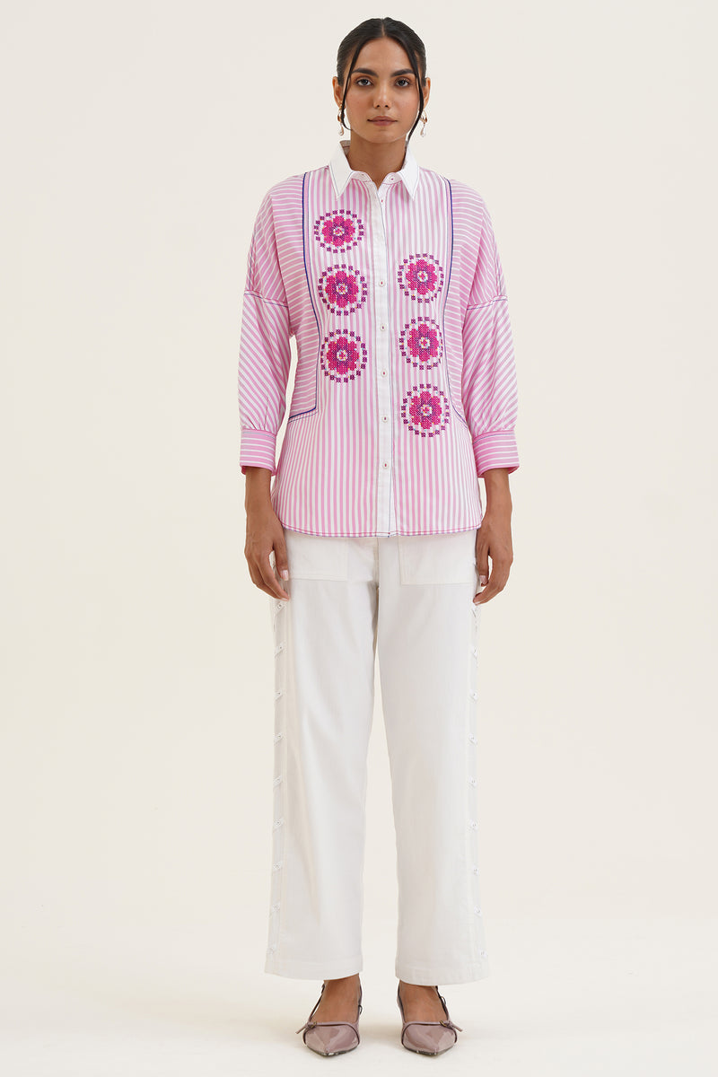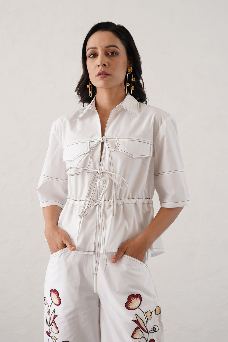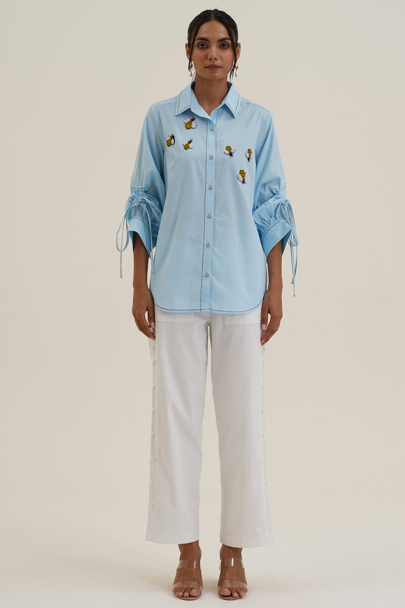 Inspired by blooming gardens and the ease of leisure-filled mornings, the collection comes alive through embroidered dresses, co-ords, and shirts, set against sunlit Mediterranean backdrops.